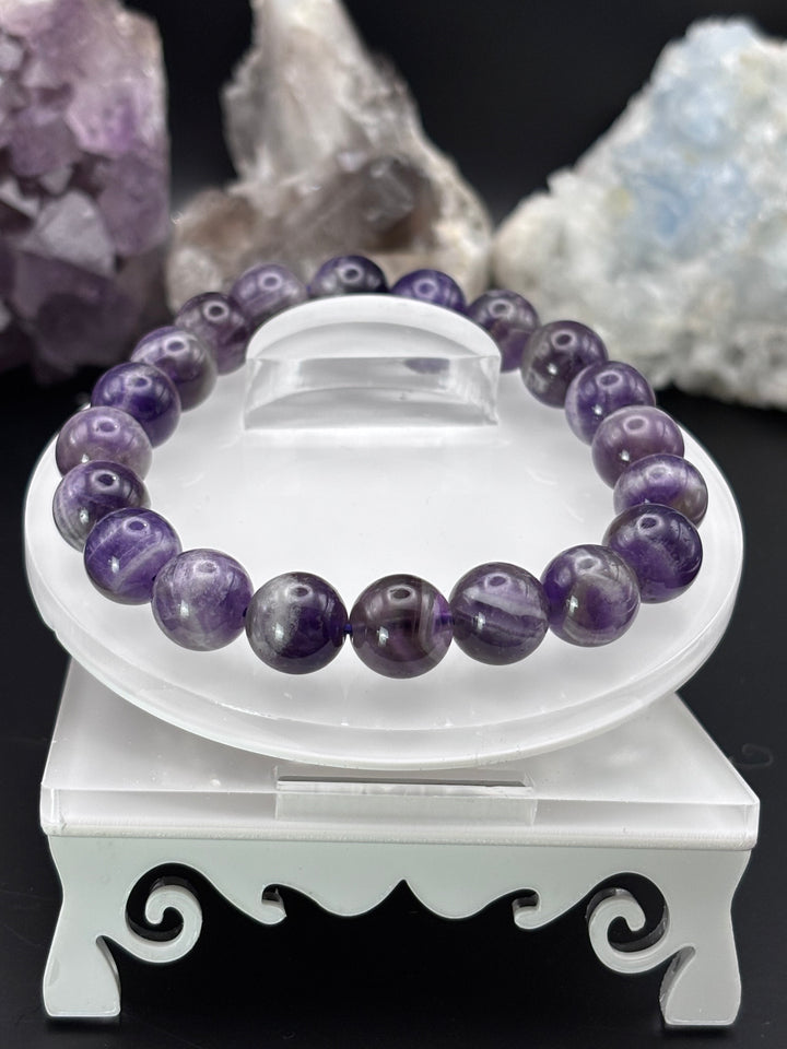 Amethyst is a powerful and protective stone. It guards against psychic attack, transmuting the energy into love and protecting the wearer from all types of harm, including geopathic or electromagnetic stress and ill wishes from others. Amethyst is a natural tranquilizer, it relieves stress and strain, soothes irritability, balances mood swings, dispels anger, rage, fear and anxiety. Alleviates sadness and grief, and dissolves negativity. Amethyst activates spiritual awareness, opens intuition and enhances psychic abilities. It has strong healing and cleansing powers. Amethyst encourages sobriety, having a sobering effect on overindulgence of alcohol, drugs or other addictions. It calms and stimulates the mind, helping you become more focused, enhancing memory and improving motivation. Amethyst assists in remembering and understanding dreams. It relieves insomnia. Encourages selflessness and spiritual wisdom.