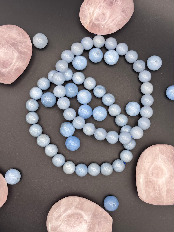 Angelite raises the state of conscious awareness. It represents peace and brotherhood. Angelite facilitates contact with your angels and spirit guides and helps to connect with your higher self. It enhances psychic healing and telepathic communication and enables astral travel and spirit journeys.